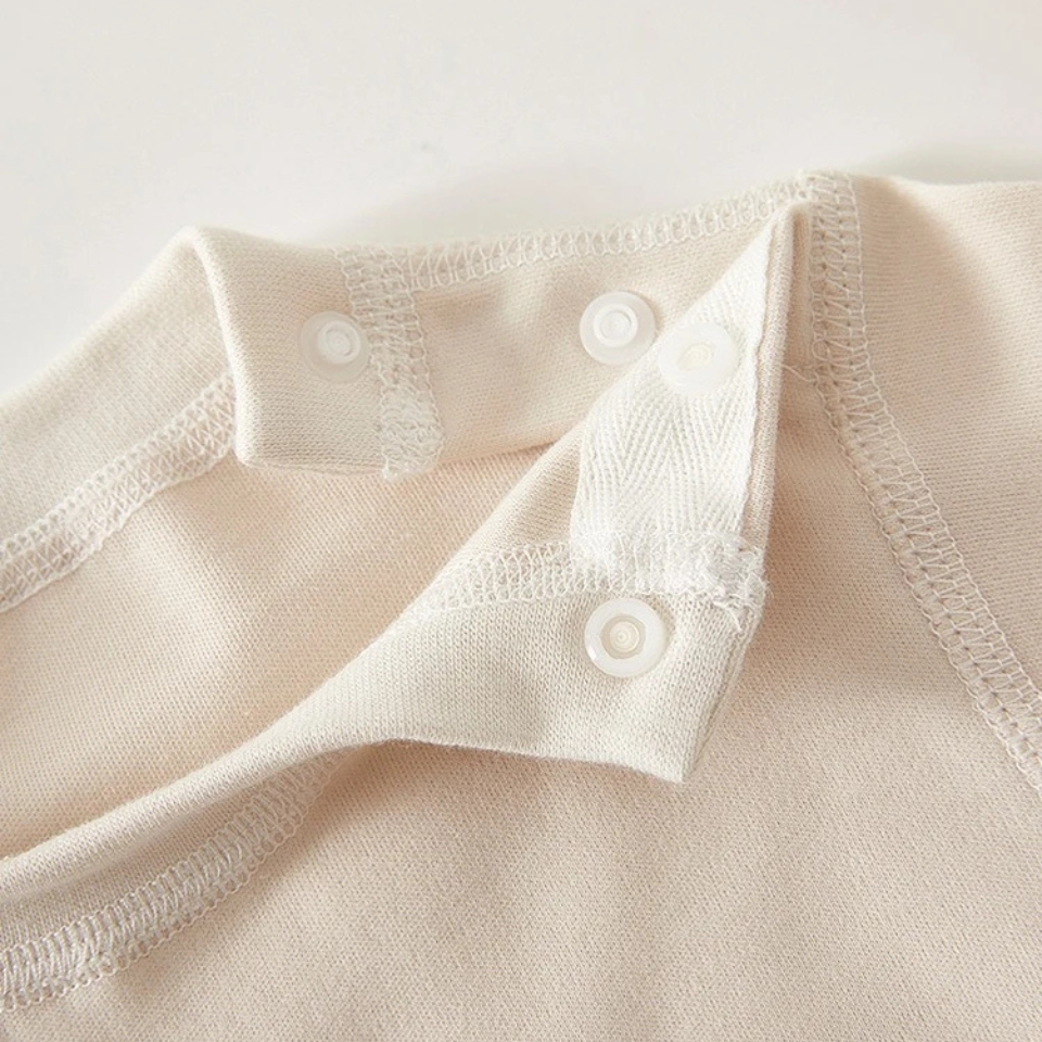 - Snap-button closures at shoulders and crotch for easy dressing and diaper changes