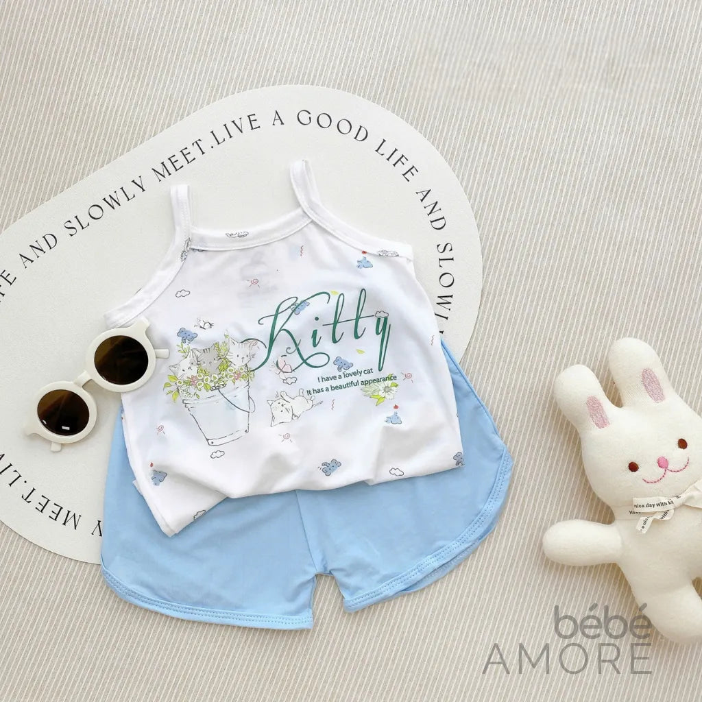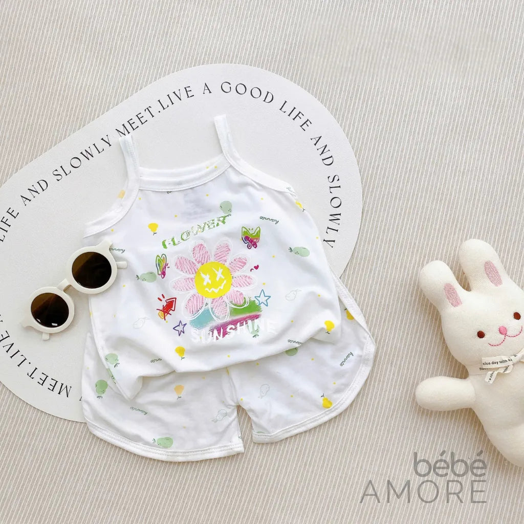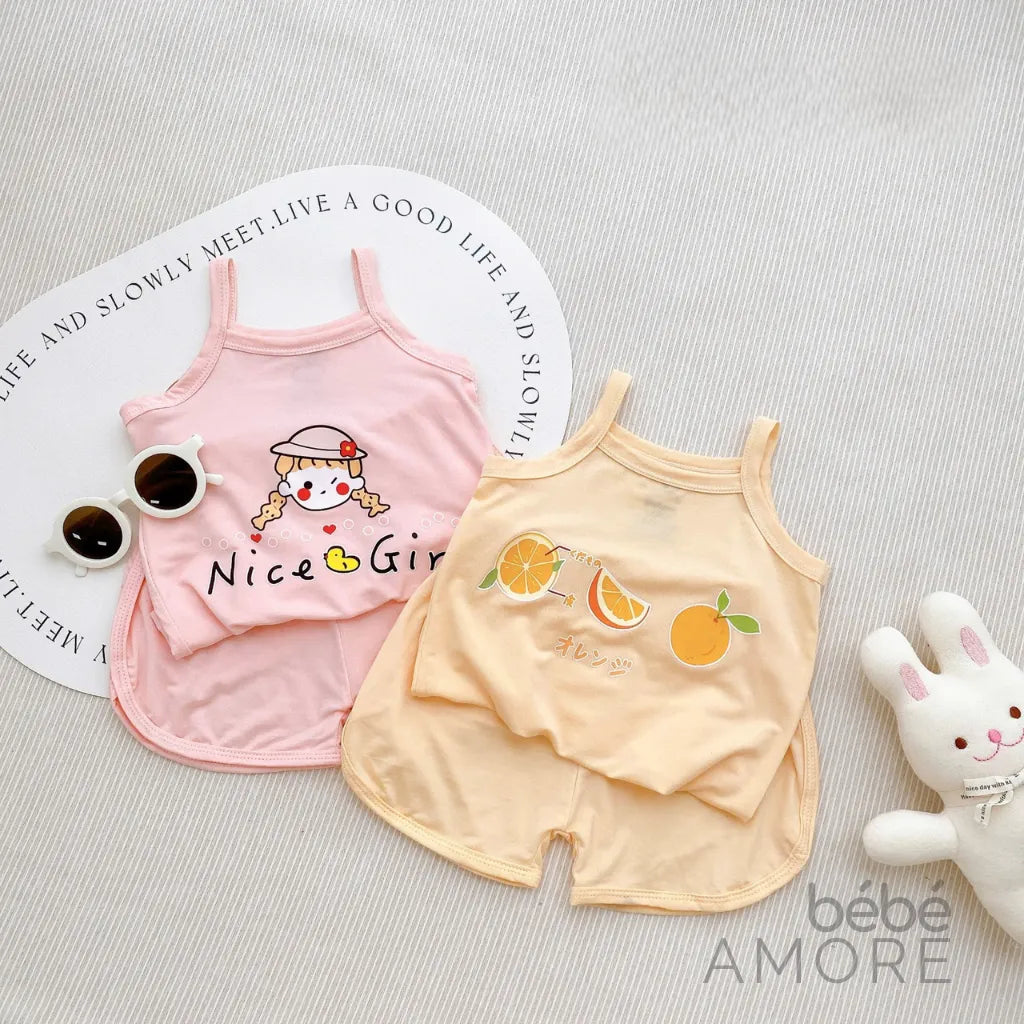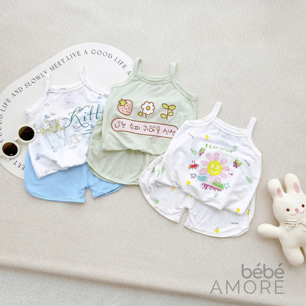 เซต 5 ชุด เสื้อสายเดี่ยวและกางเกงขาสั้นสำหรับเด็กผู้หญิง - ผ้า Petit เกรดพรีเมียม